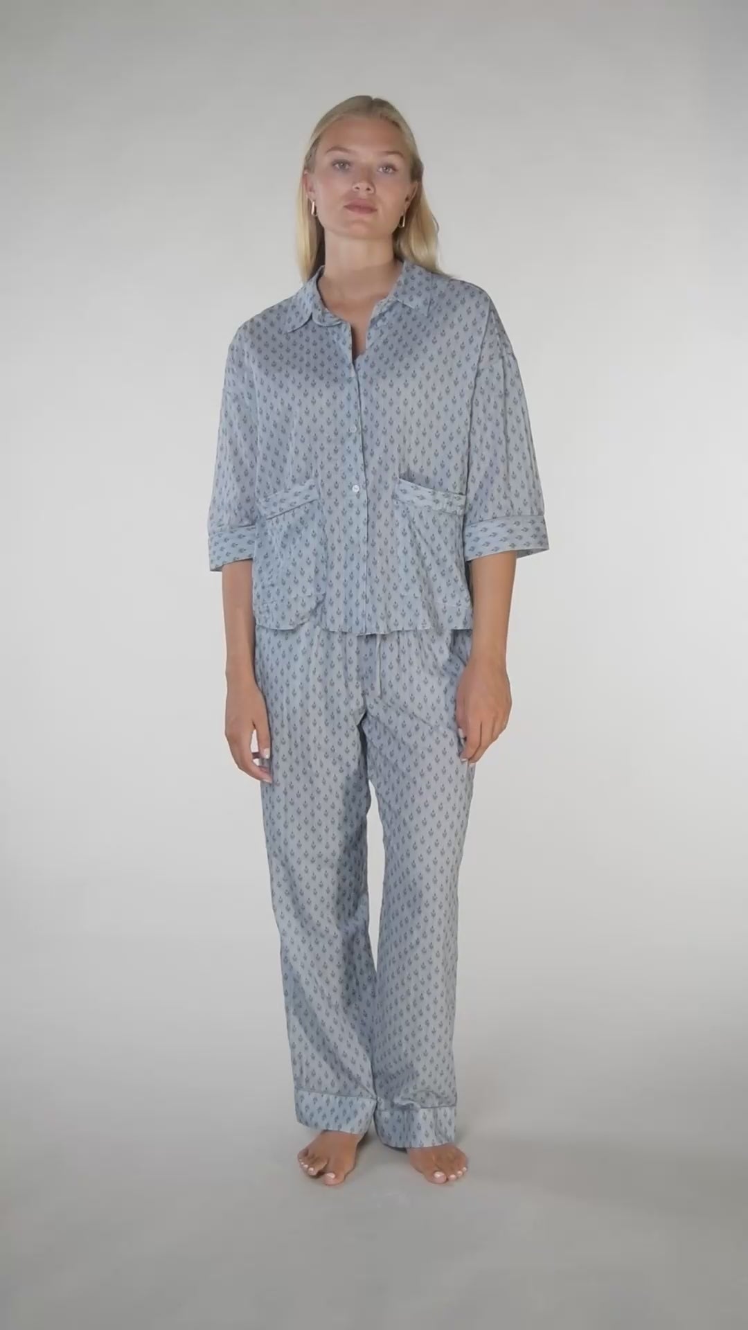 Skjorten er en perfekt blanding af Økologisk Bomuld og Viskose, som gør stoffet utrolig behageligt at have på. Denne style kan med fordel sættes sammen med Katrina Pants fra samme serie for et sammenhængende look, men du kan også bruge den sammen med en anden nattop eller skjorte efter eget valg.